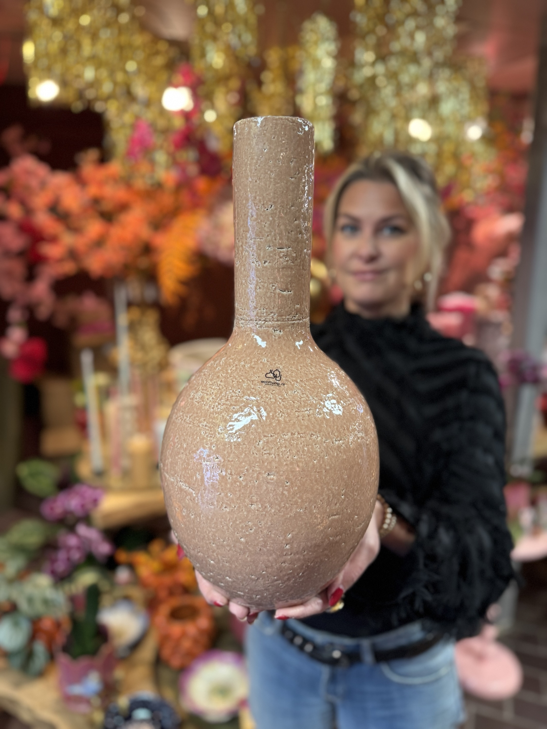 Schitterende vaas van Ecri Living in zachtroze tint.