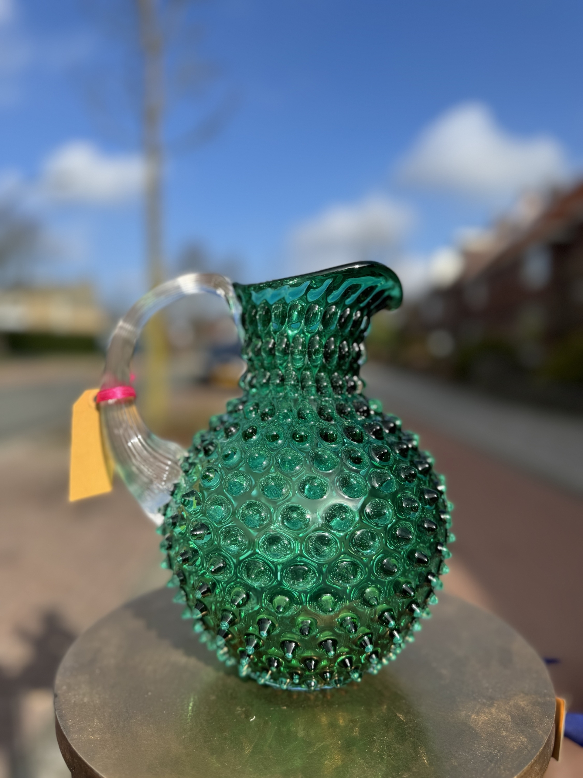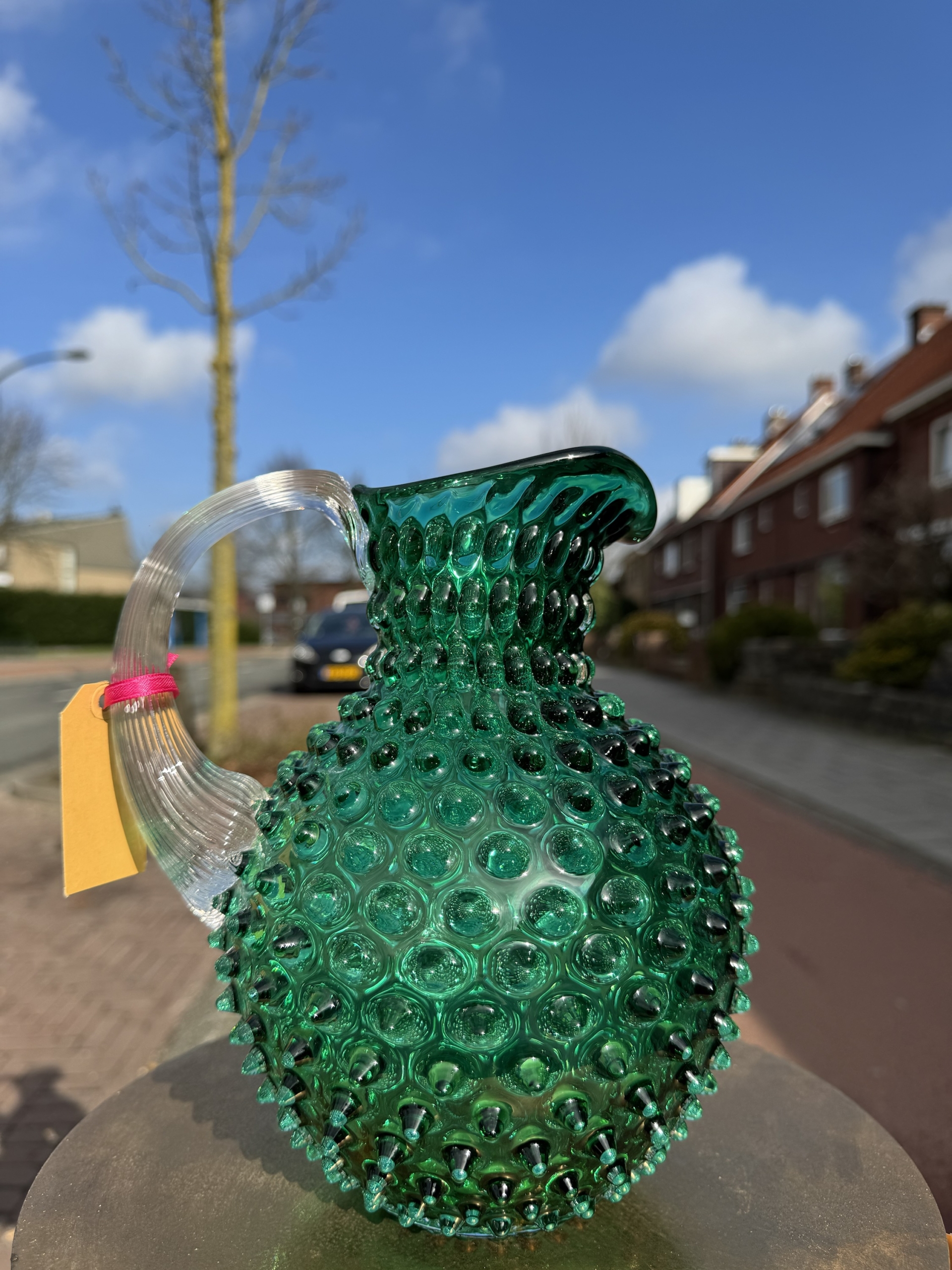 Prachtig mondgeblazen karaf in de kleur donkergroen.