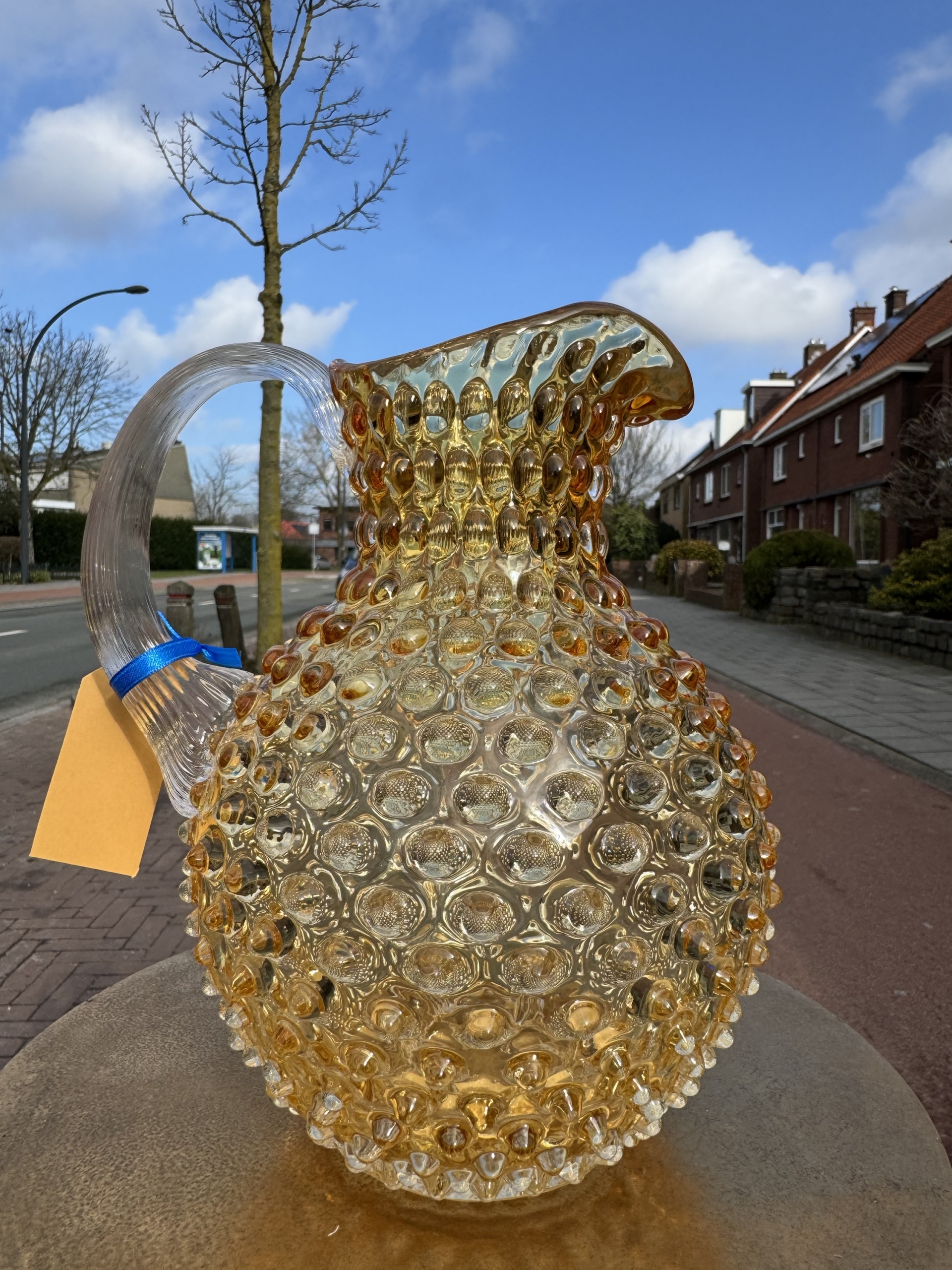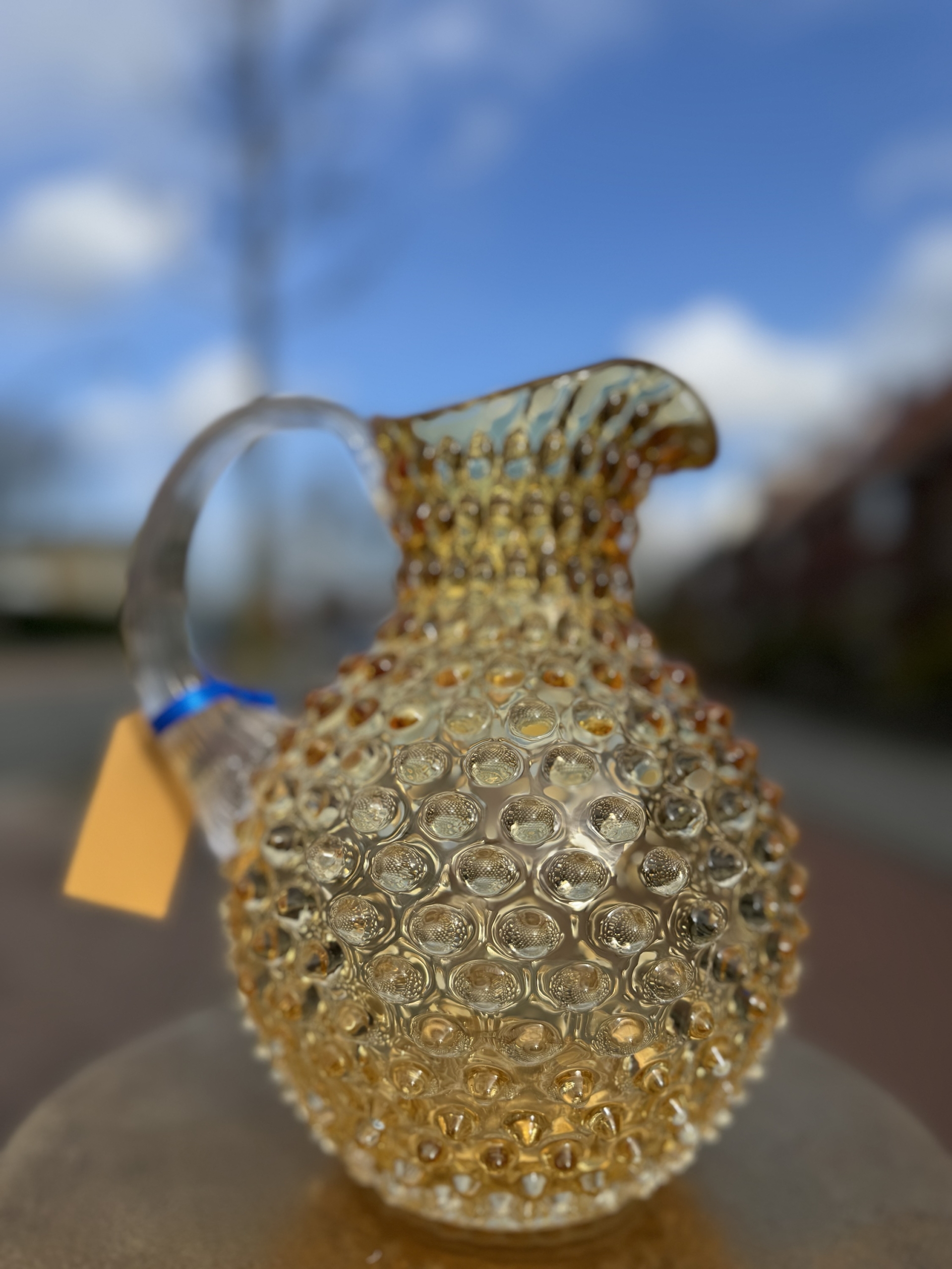 Prachtig mondgeblazen karaf in de kleur licht amber.