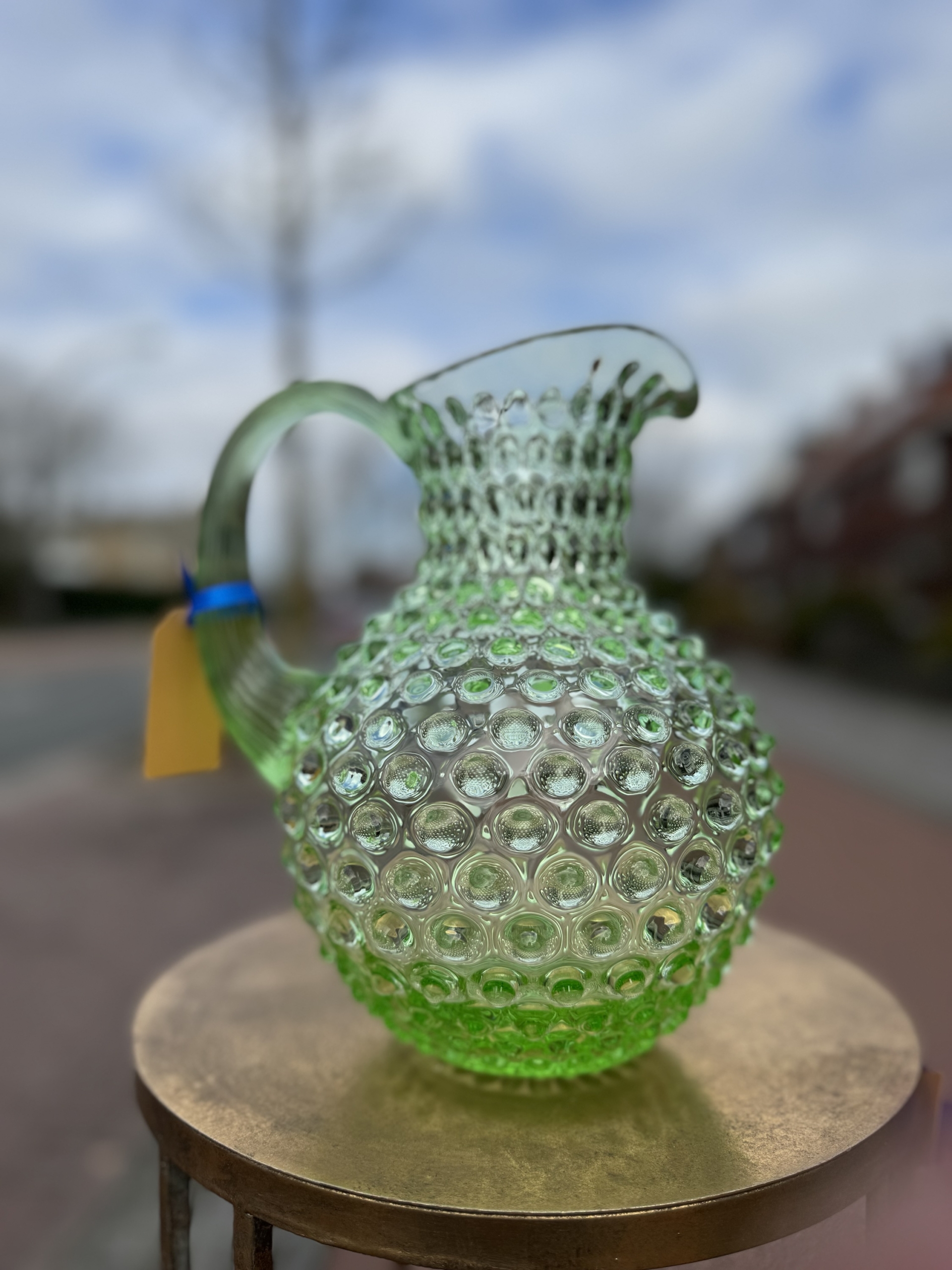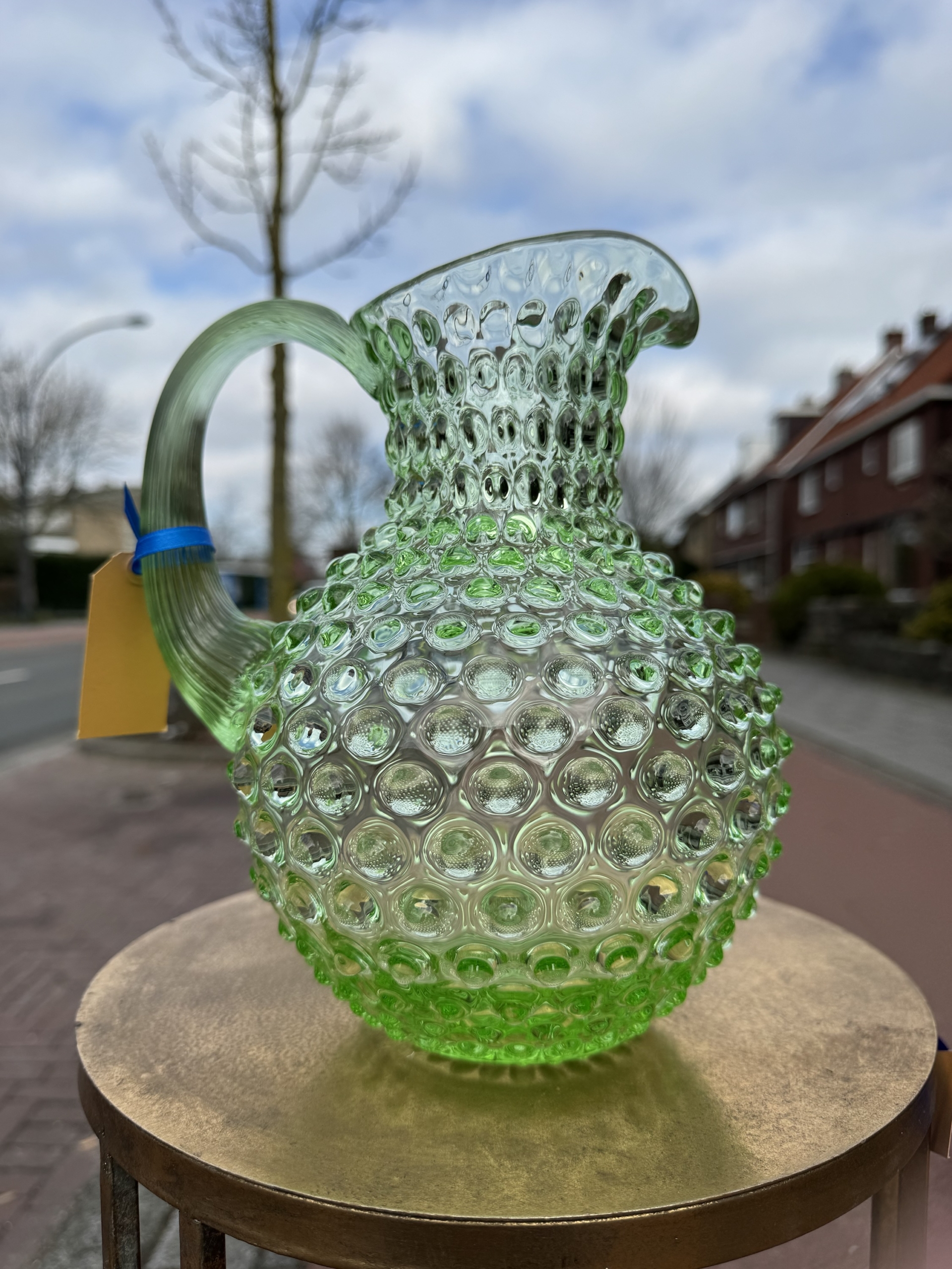 Prachtig mondgeblazen karaf in de kleur licht groen.
