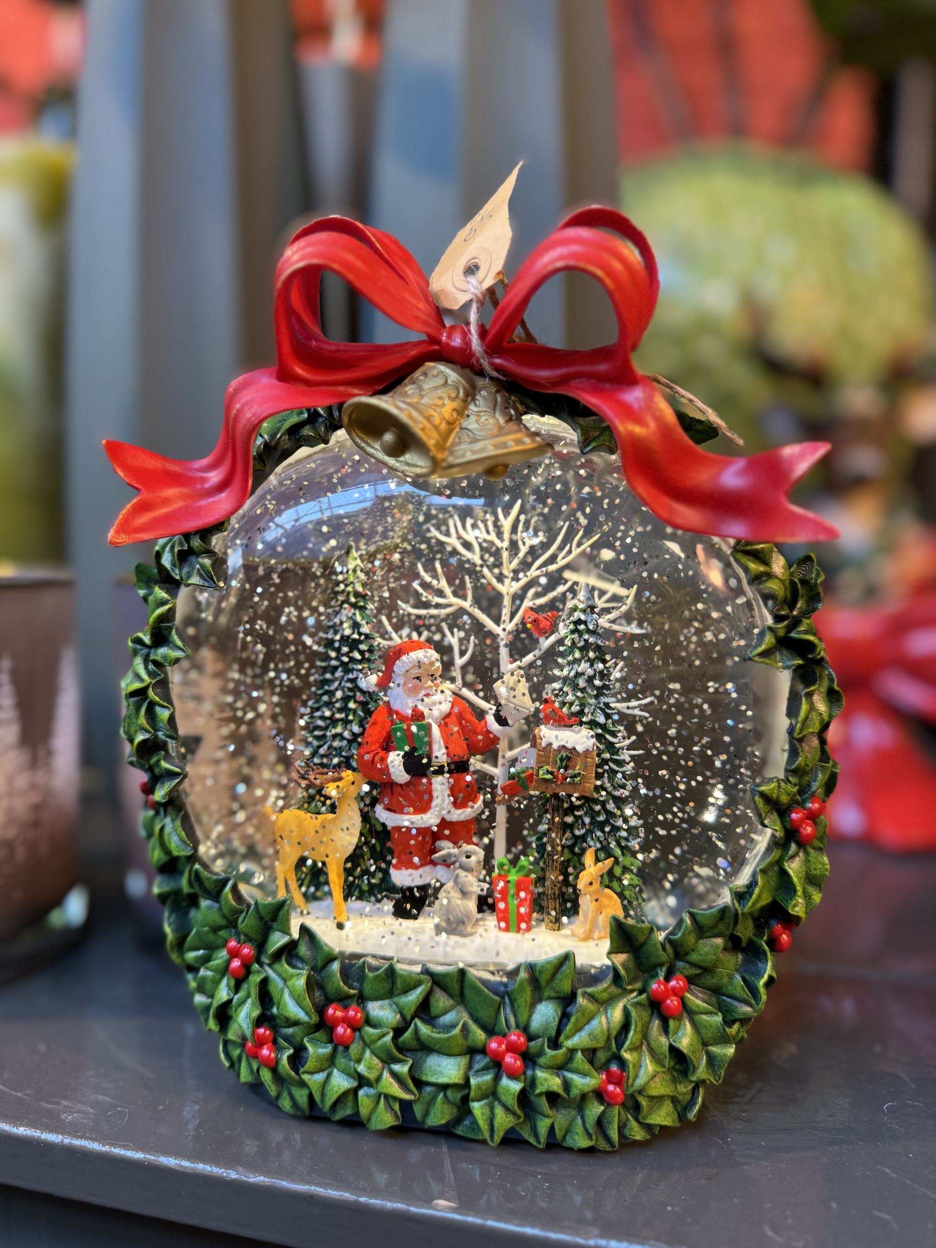 Prachtige glitterbol met arrenslee met muziekje en lichtje.