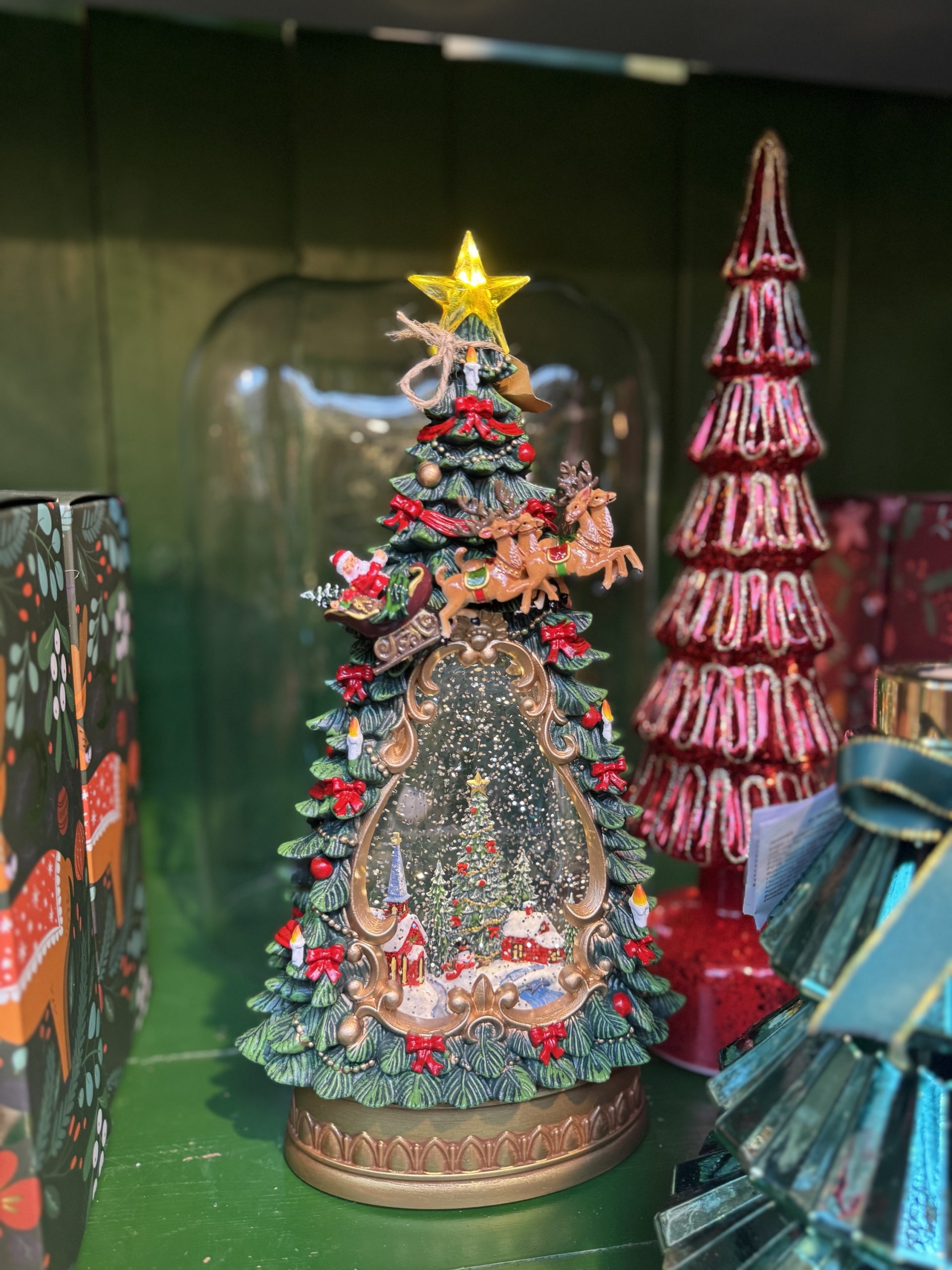 Prachtige glitterbol met arrenslee met muziekje en lichtje.
