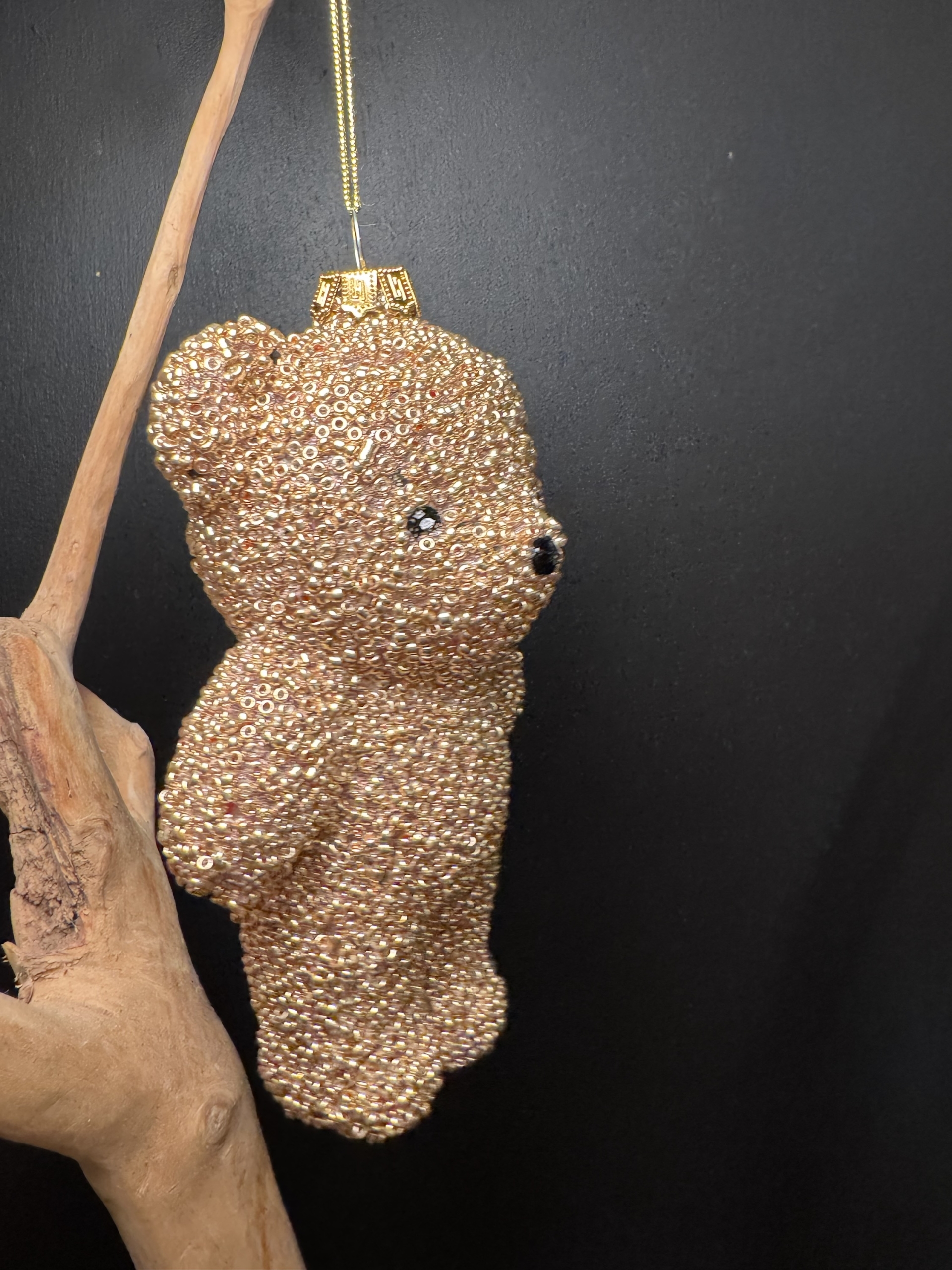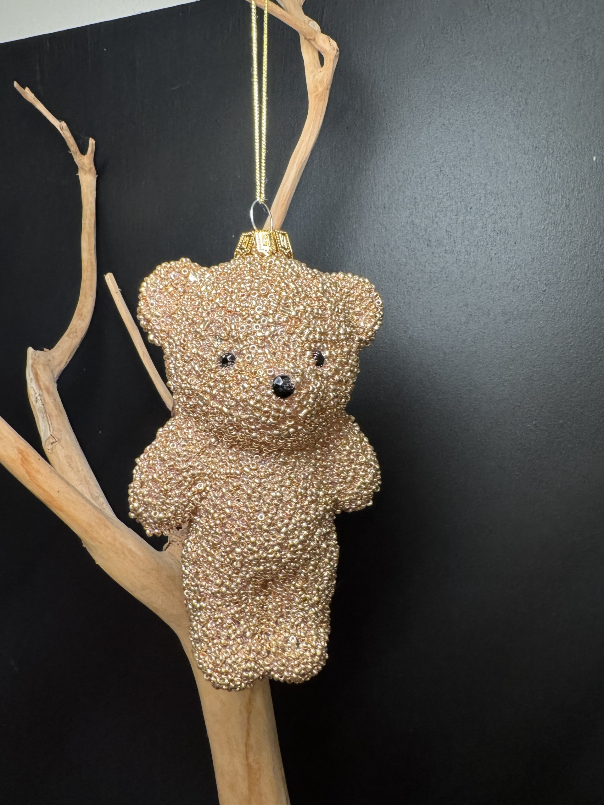 Leuke beren hanger voor in de kerstboom in goudkleur.