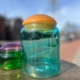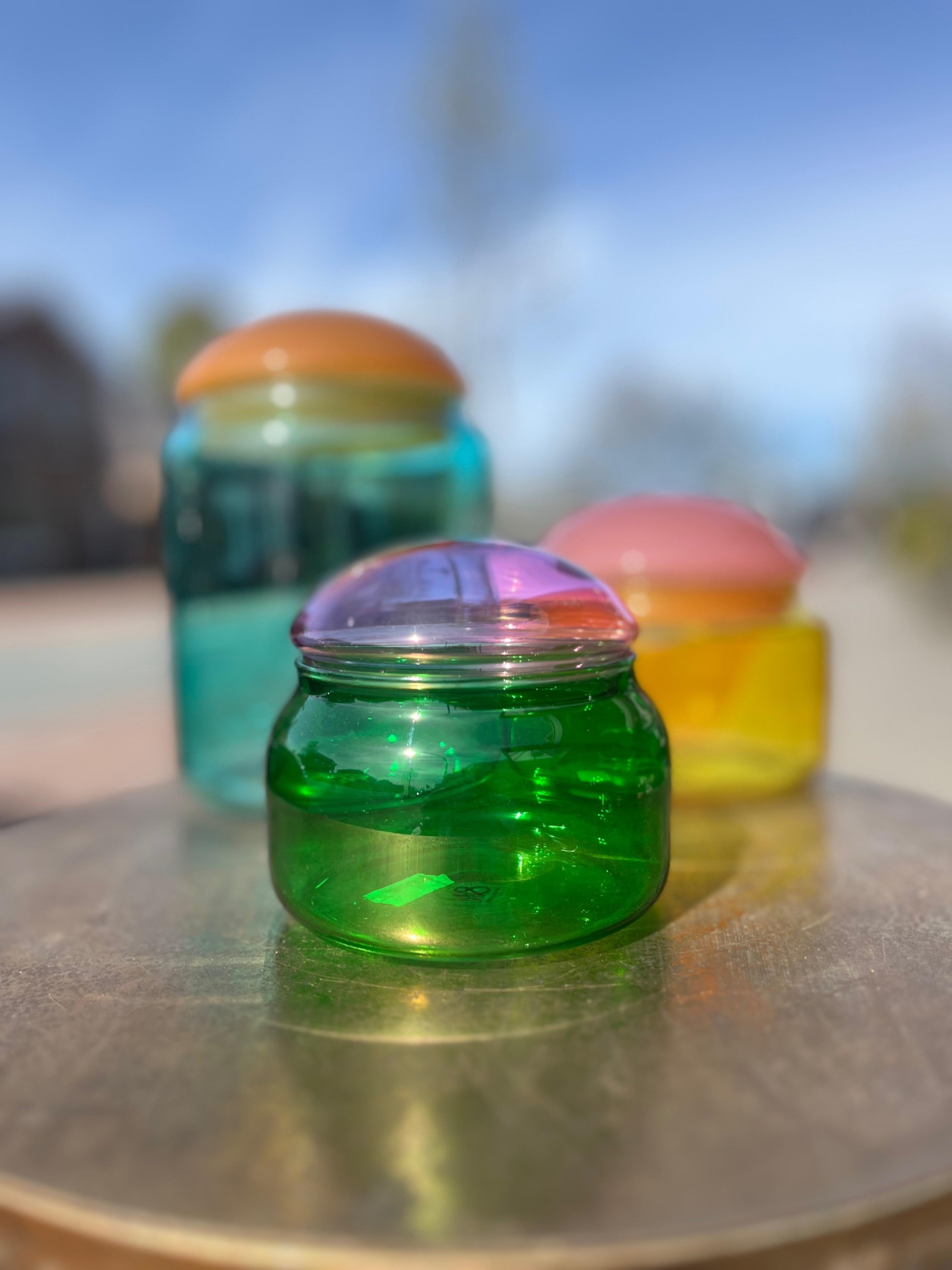Leuk transparant glazen voorraadpotje in frisse groene kleur met roze deksel.