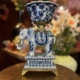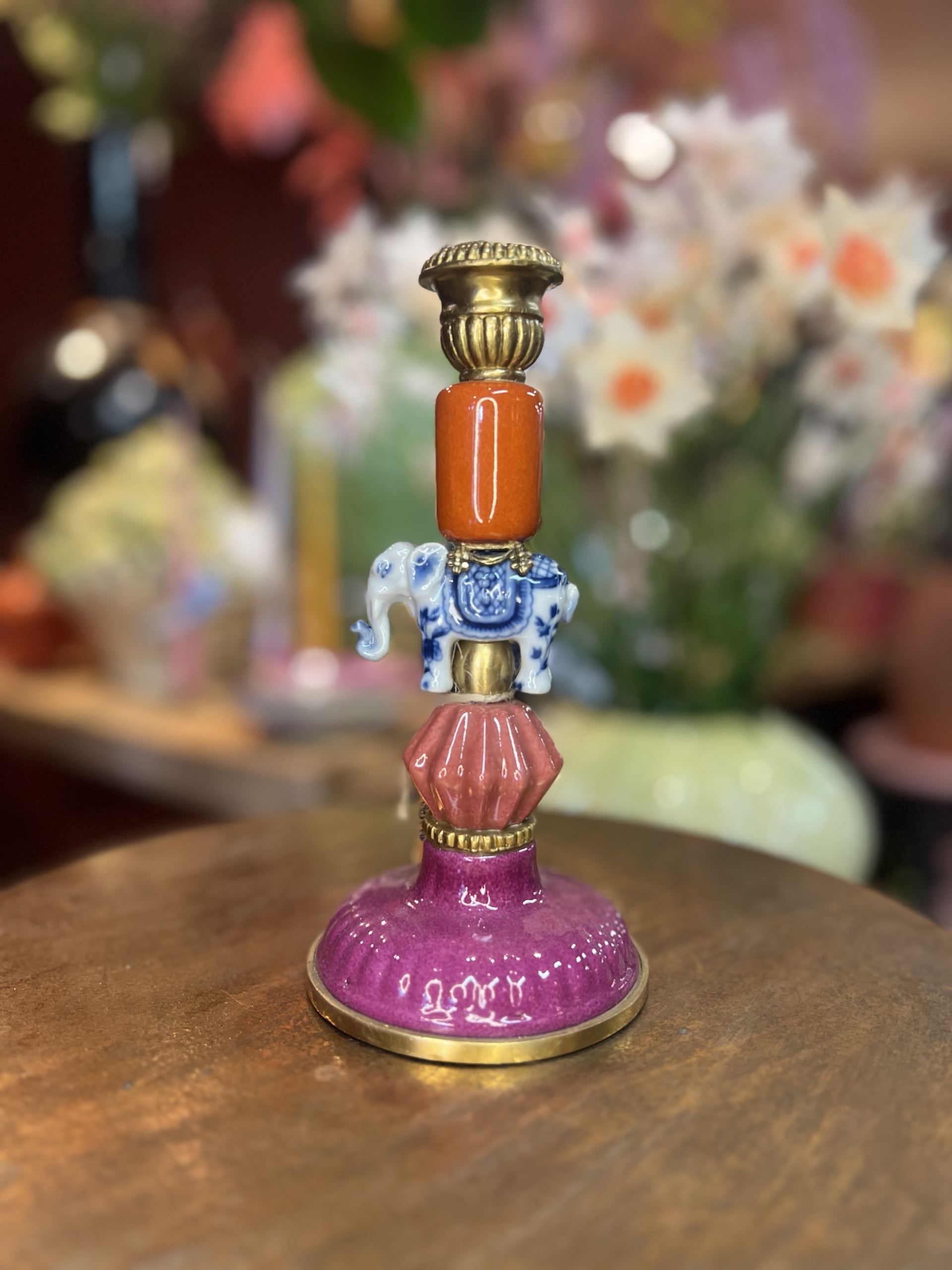 Mooie kandelaar met olifant van porselein en messing.