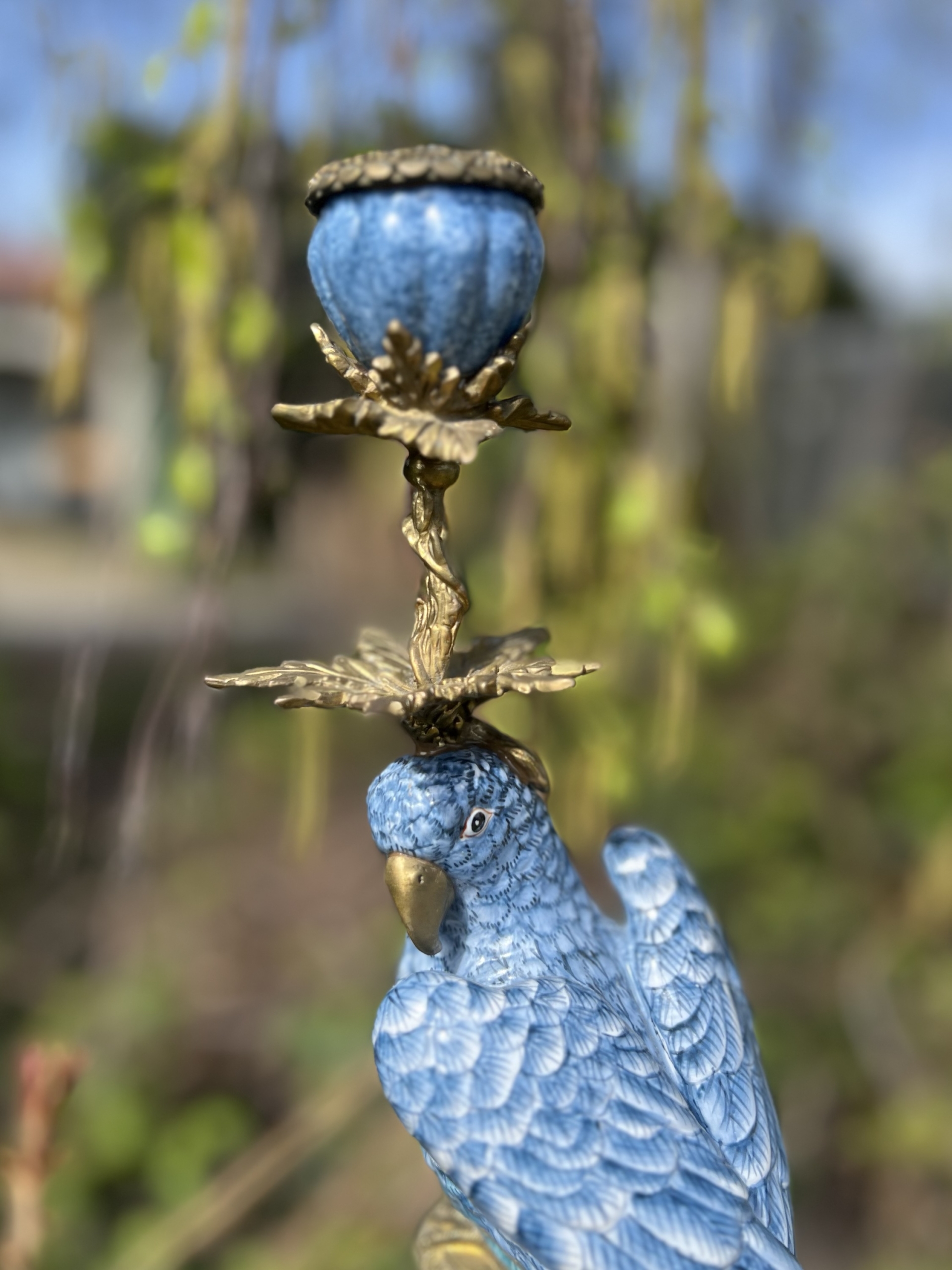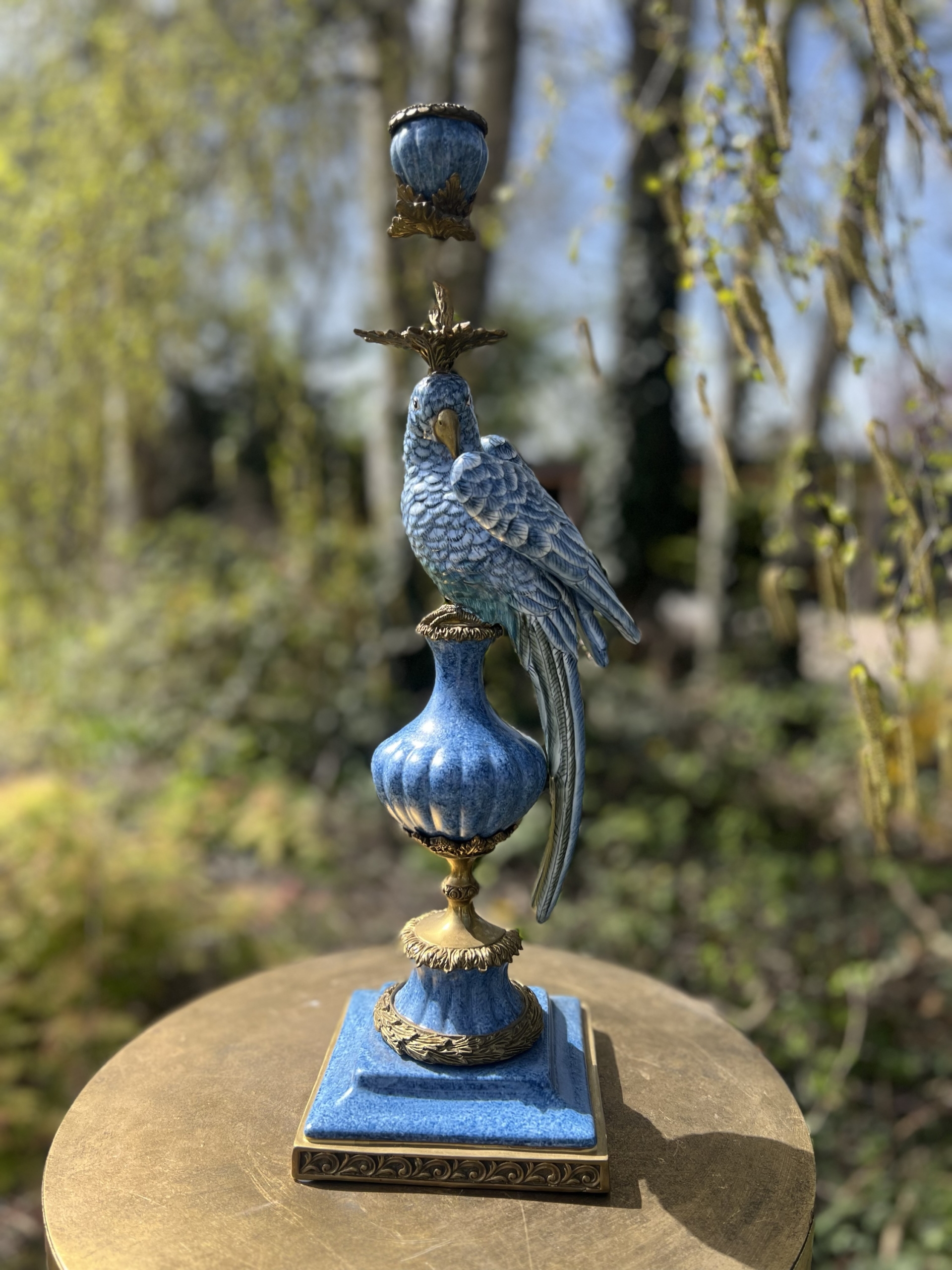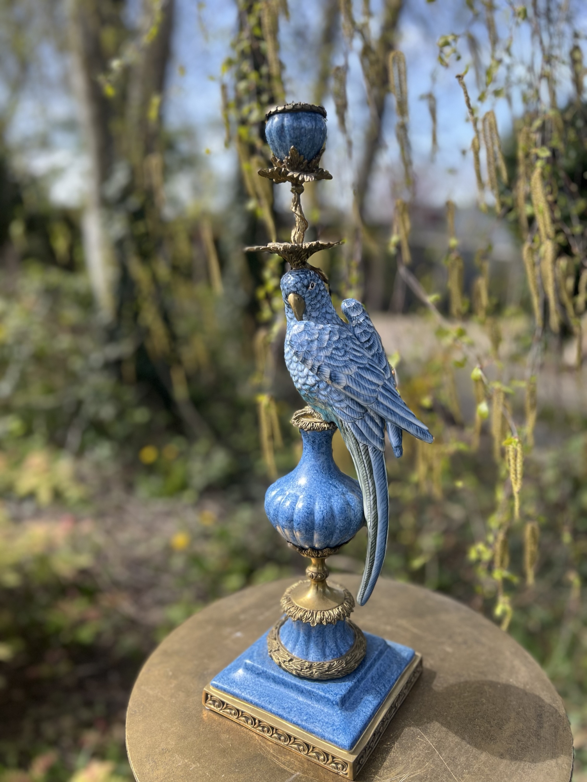 Prachtige luxe kandelaar met blauwe vogel van het mooie merk Abhika.